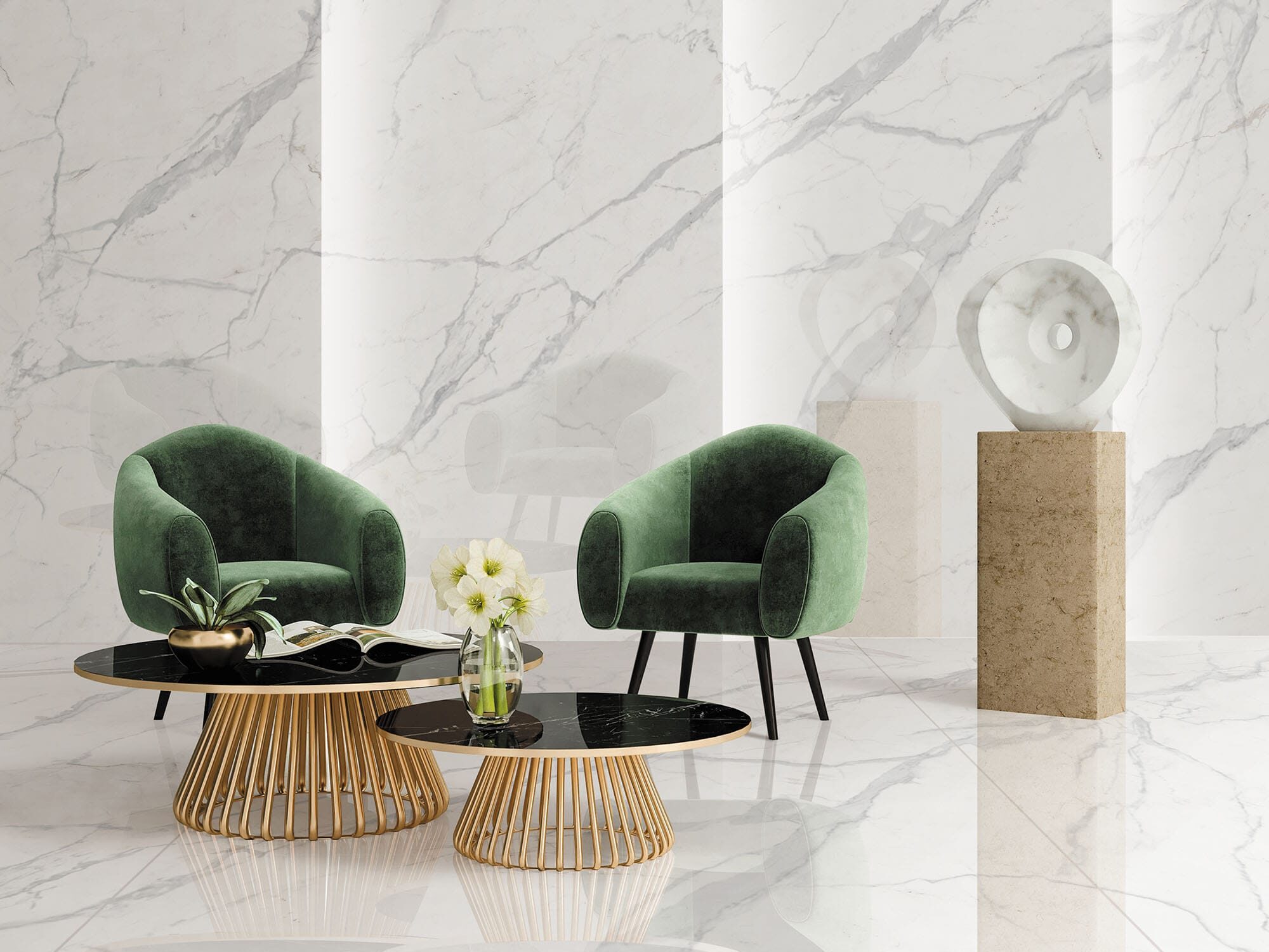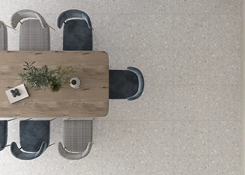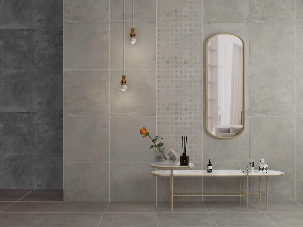 In Hilite's showroom, the main products on display include antique tiles, thick tiles, mosaic tiles and rock slabs, each of which has a unique design and function for different decorative needs.