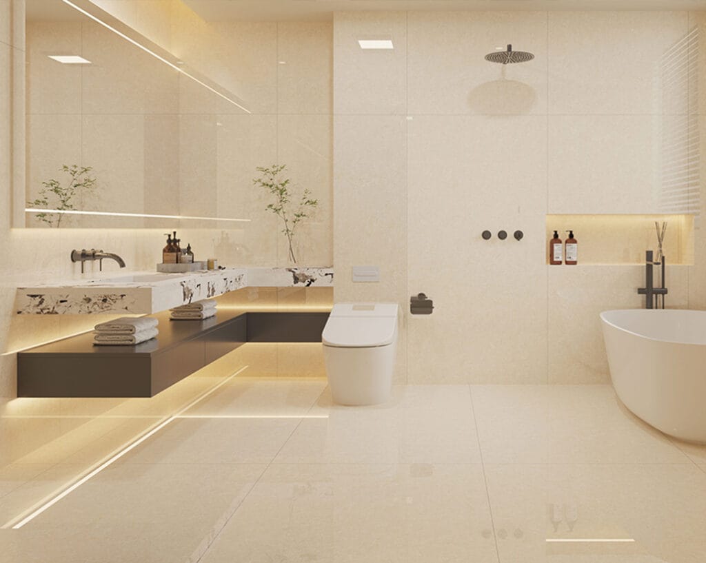 The bathroom is the most beautiful and practical space in the home. With its waterproof, non-slip, stain-resistant and easy-to-clean features, ceramic tiles are an ideal choice for bathroom walls and floors.