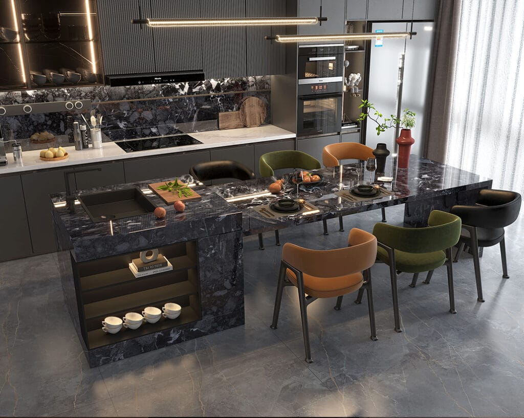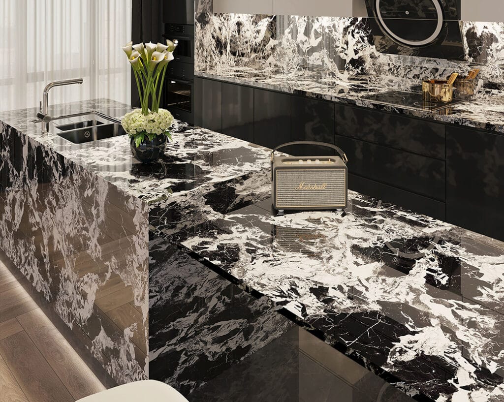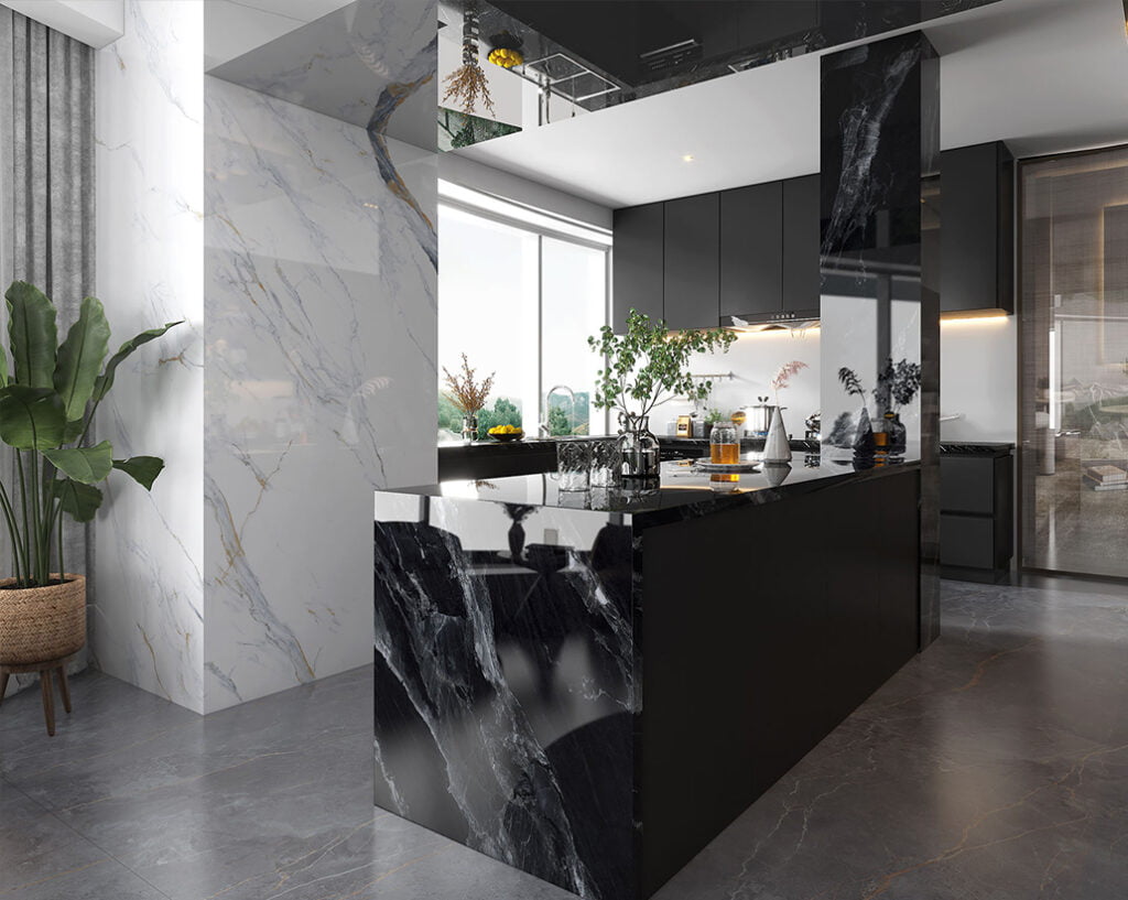 Sintered stone collection is available in various fomats: 1200x2400x9 mm,900x1800x9 mm and