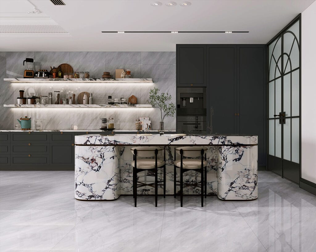 Sintered stone collection is available in various fomats: 1200x2400x9 mm,900x1800x9 mm and