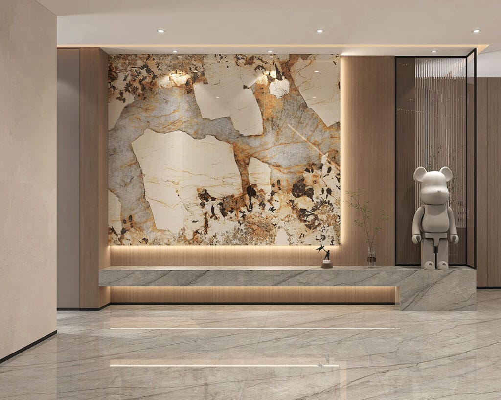 Sintered stone is made of natural rock through fine processingits surface has the texture and texture of natural stone, and atthe same time has the advantages of high strength, high wearresistance, and easy cleaning. Slate is widely used in the fieldof architectural decoration, and can be used for indoor andoutdoor wall, floor, staircase and other decorations to bringpeople a more comfortable and elegant living environment.